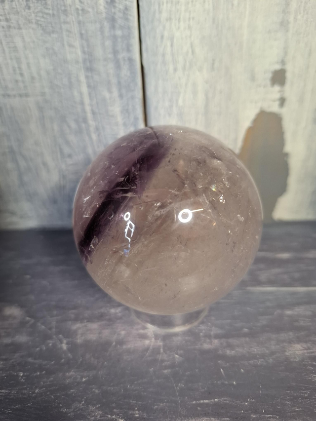 Amethyst sphere, measuring approx 61mm. Amethyst is a purple variety of Quartz and is found all over the world, most famously Brazil and Uruguay. The Greeks used it to protect against drunkeness and it has become known as the crystal to protect against drinking and addiction. You will receive the exact crystal shown.