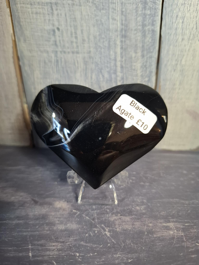 Black Agate heart, measuring approx 66mm x 50mm. Agate is the name given to Chalcedony, which is a microcrystalline variety of Quartz. It is characterised by its banding. The different names reference either the colour of the Agate or the location in which it was found. Comes in a large variety of colours.You will receive the exact crystal shown.