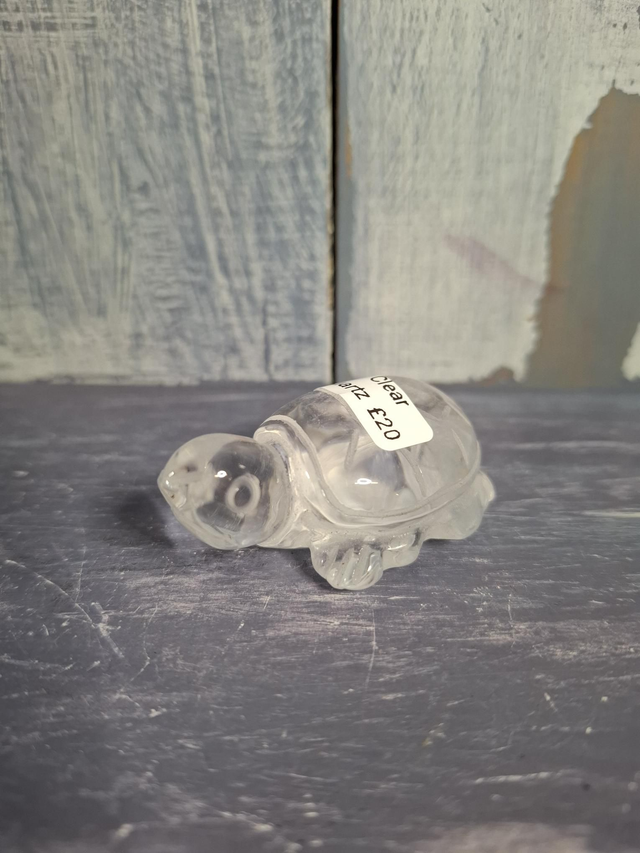 Beautifully carved Clear Quartz tortoise, measuring approx 52mm x 41mm. One of the most widespread minerals in the world. Some Quartz crystals have the ability to generate electricity when hit, (piezoelectric). Used in many everyday things, such as clocks and electrical devices. You will receive the exact crystal shown.