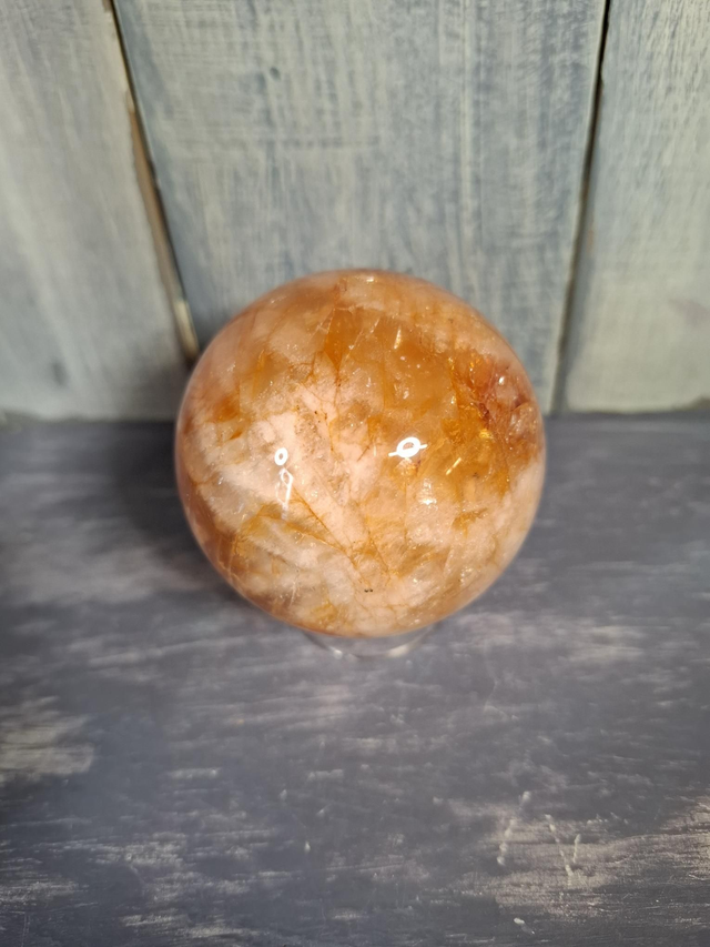 Fire Quartz sphere, measuring approx 59mm. Also known as Harlequin Quartz, which is the trade name given to Quartz with inclusions of Hematite. You will receive the exact crystal shown.