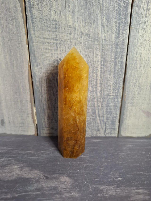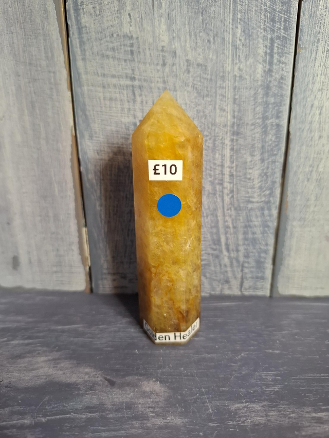 Golden Healer tower, measuring approx 90mm x 25mm. Clear Quartz, with inclusions of Iron that gives it its golden colouring. Good quality Golden Healer can be found in Brazil and Madagascar. You will receive the exact crystal shown.
