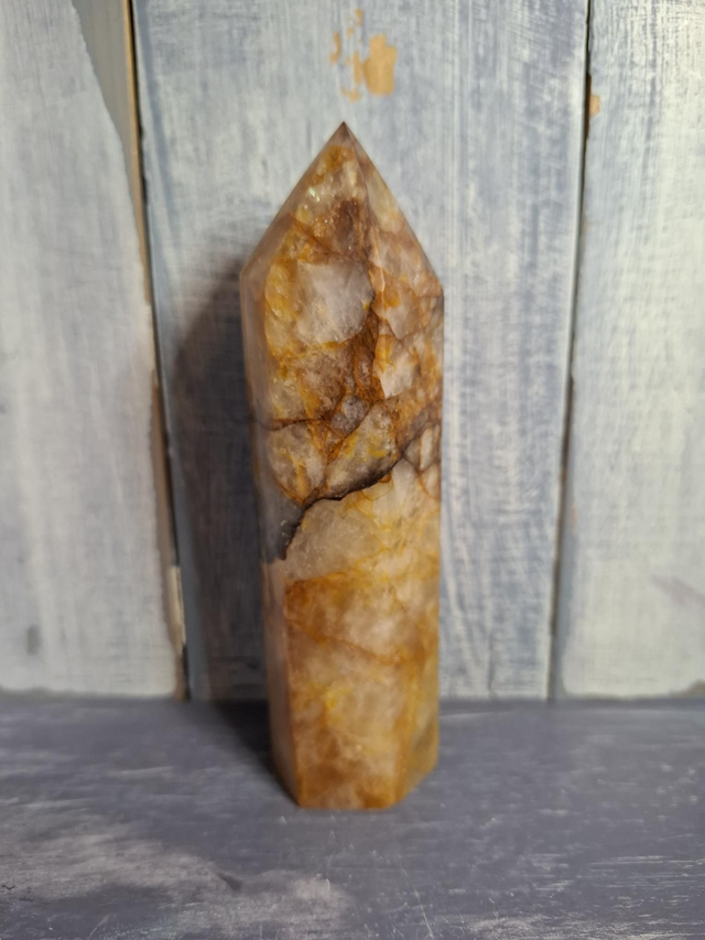 Golden Healer tower, measuring approx 122mm x 34mm. Clear Quartz, with inclusions of Iron that gives it its golden colouring. Good quality Golden Healer can be found in Brazil and Madagascar. You will receive the exact crystal shown.