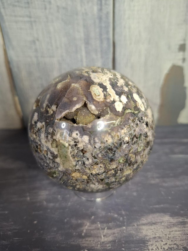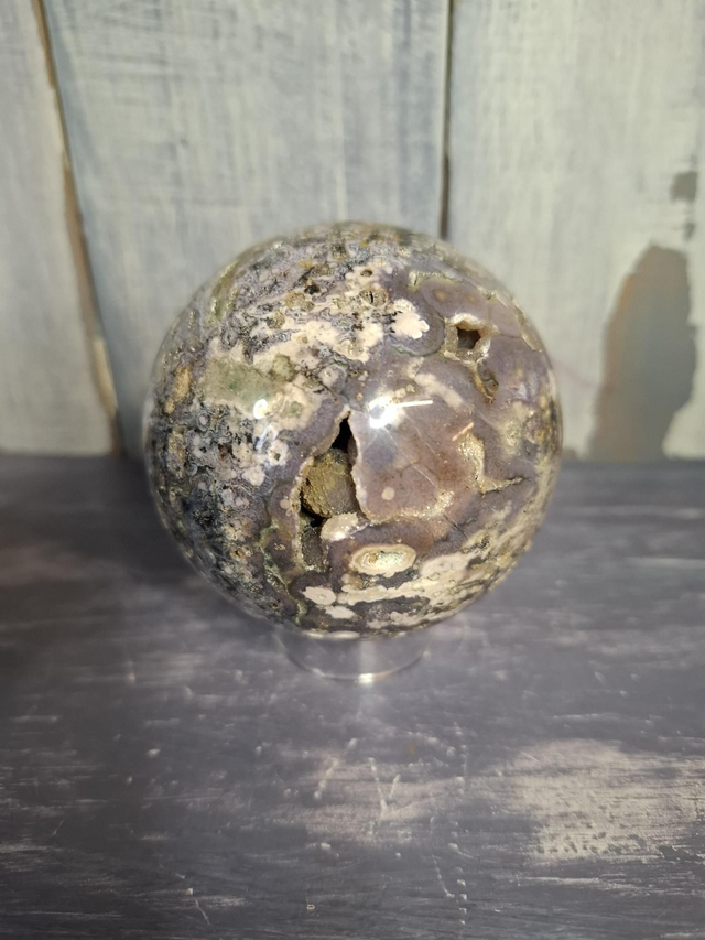 Beautiful Grape Agate sphere, measuring approx 68mm. A rare purple botryoidal Chalcedony from Indonesia. Can also been found in green. You will receive the exact crystal shown.