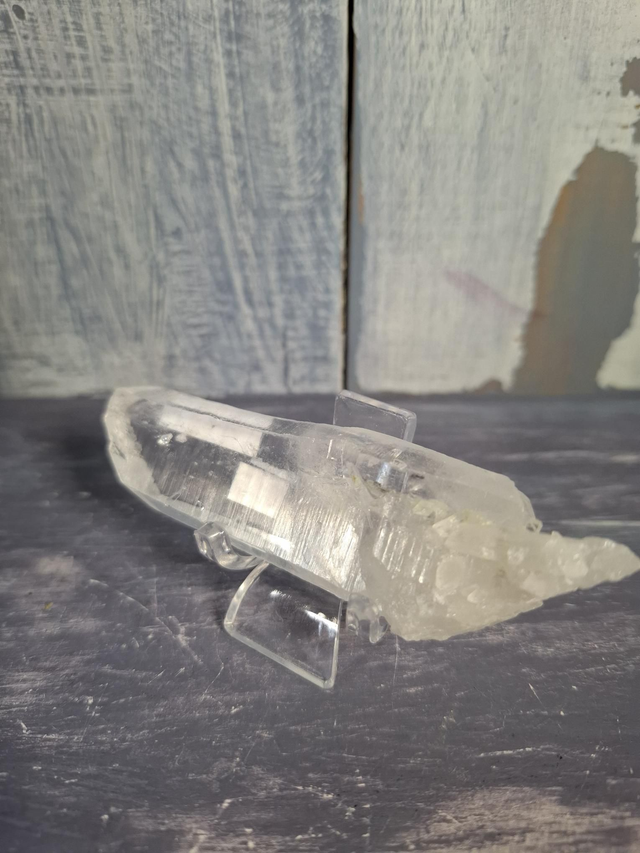 Lemurian Quartz point, measuring approx 83mm x 24mm. Characterized by horizontal striations, known as barcodes, on its sides. Believed to hold ancient, encoded wisdom from the lost civilisation of Lemuria. Used in healing, meditation and accessing higher consciousness. One of the most widespread minerals in the world. Some Quartz crystals have the ability to generate electricity when hit, (piezoelectric). Used in many everyday things, such as clocks and electrical devices. You will receive the exact crystal shown.