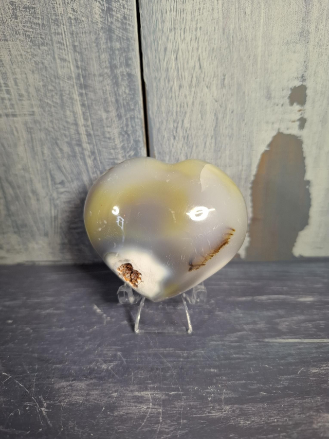 Orca Agate heart, measuring approx 49mm x 54mm x 28mm. A form of Agate from Madagascar, with a deep blue and white pattern, which resembles that of the Orca whale. Agate is the name given to Chalcedony, which is a microcrystalline variety of Quartz. It is characterised by its banding. The different names reference either the colour of the Agate or the location in which it was found. Comes in a large variety of colours.You will receive the exact crystal shown.