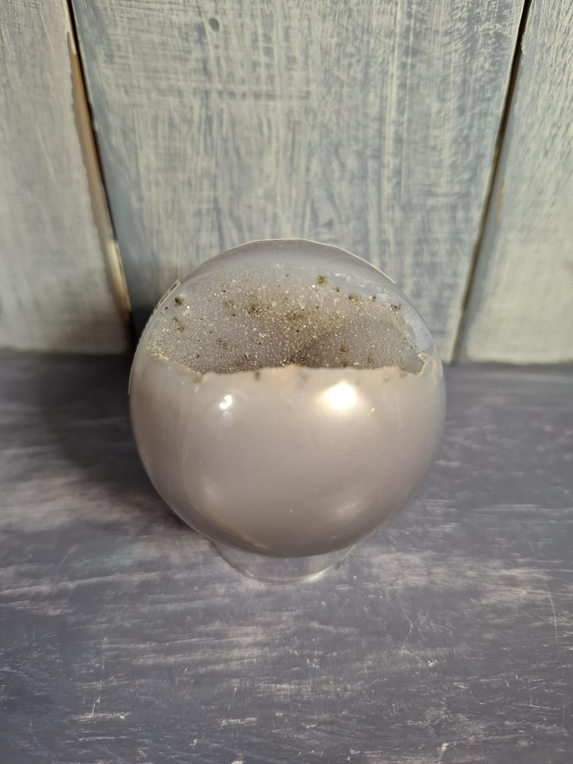 Orca Agate sphere, measuring approx 53mm. A form of Agate from Madagascar, with a deep blue and white pattern, which resembles that of the Orca whale. Agate is the name given to Chalcedony, which is a microcrystalline variety of Quartz. It is characterised by its banding. The different names reference either the colour of the Agate or the location in which it was found. Comes in a large variety of colours.You will receive the exact crystal shown.