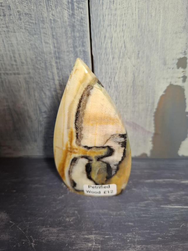 Petrified Wood teardrop, measuring approx 82mm x 45mm. A fossil which forms when a tree dies and the organic matter is gradually replaced by Quartz, and dates back hundreds of millions of years. The colours come from the different elements in the mud/water from when the wood was petrified. Found in many locations but most famously in the Petrified Forest in Arizona, USA. You will receive the exact crystal shown.