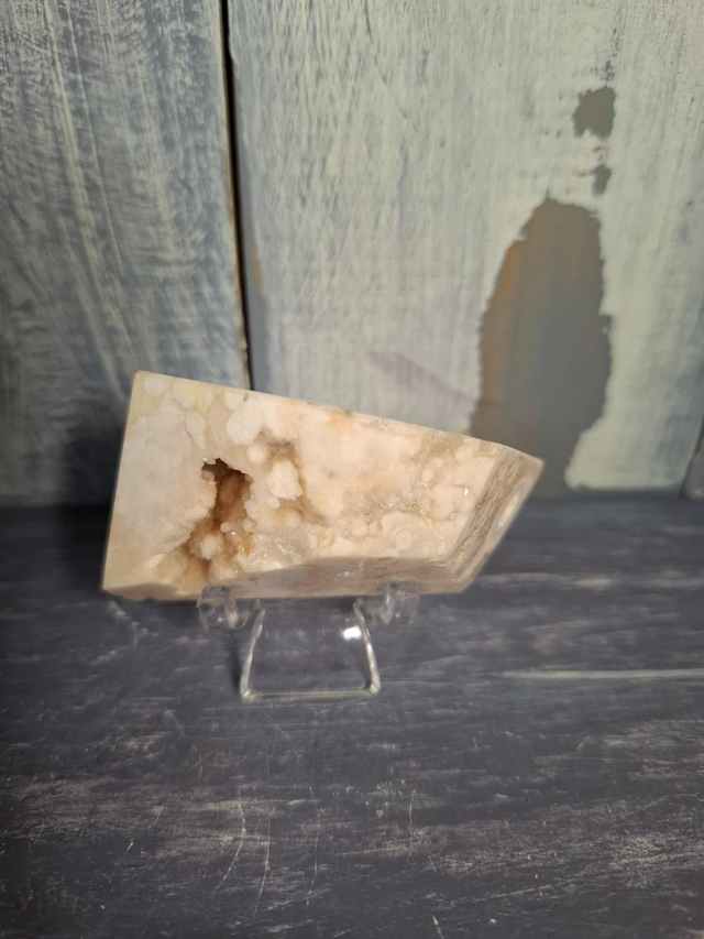 Pink Amethyst free-form, measuring approx 55mm x 27mm. Geodes come from the Choique Mine in Argentina, larger pieces in shades of soft pink to a much deeper pink, have been discovered in Brazil. The pink colouring comes from Hematite inclusions. You will receive the exact crystal shown.