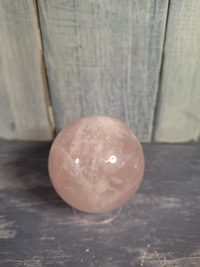 Rose Quartz sphere, measuring approx 51mm. One of the most popular crystals, Rose Quartz has been found dating back to 7000 BC. The Egyptians believed it was good for the complexion and helped to prevent ageing. Known as the stone of unconditional and universal love. Special Star Rose Quartz are highly desired; these are crystals, that when polished into a sphere, show a 4 or 6 ray star effect that moves over the surface. You will receive the exact crystal shown.