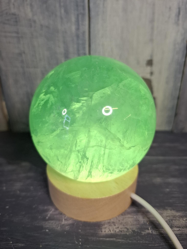 'Tiffany' Blue Fluorite sphere, measuring approx 70mm. Fluorite is found in a large variety of colours, due to the impurities in the crystal, and can be found in cubic form, octahedrons and large pieces without crystal structure visible to the naked eye. When Fluorite is pure it is colourless and many varieties are fluorescent. You will receive the exact crystal shown.
