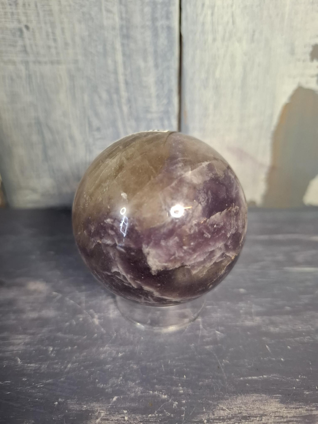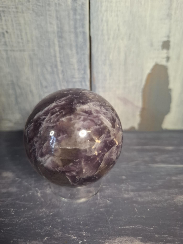 Unicorn Stone sphere, measuring approx 51mm. A recent discovery from Madagascar of Pink Tourmaline (Rubellite) combined with purple Lepidolite. Loving, feminine energy from Pink Tourmaline. You will receive the exact crystal shown.