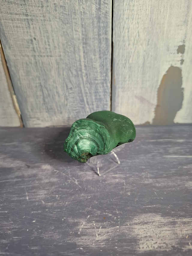 Velvet Malachite free-form, measuring approx 49mm x 39mm. A fibrous specimen of Malachite, which gives it a velvet appearance. Malachite is a copper mineral, found in Egypt and Russia although these are mostly depleted. Currently, most of the Malachite comes from the Democratic Republic of the Congo. It is one of the most commonly faked crystals. You will receive the exact crystal shown.