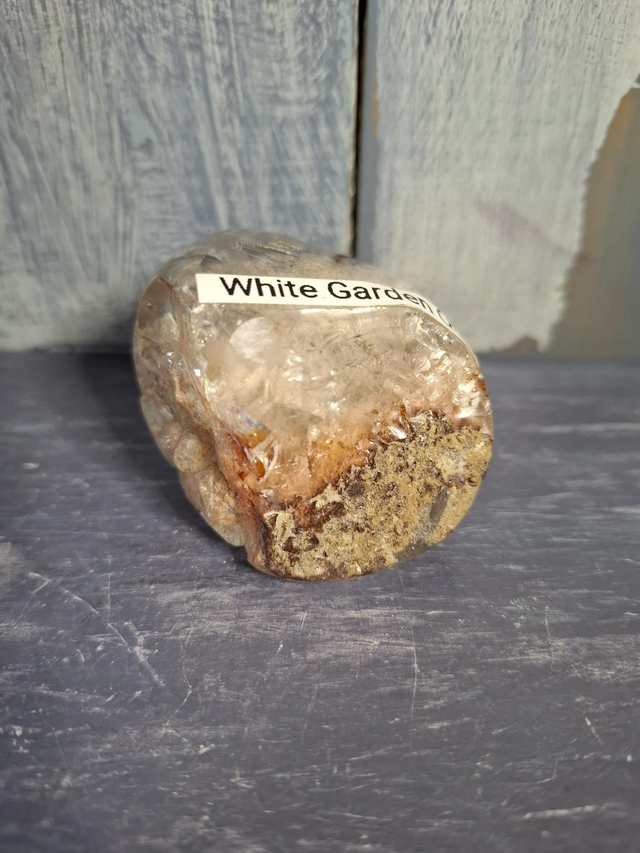 White Garden Quartz free-form, measuring approx 48mm x 42mm. Inclusions of Kaolinite or Feldspar giving the effect of a beautiful snowy scene. You will receive the exact crystal shown.